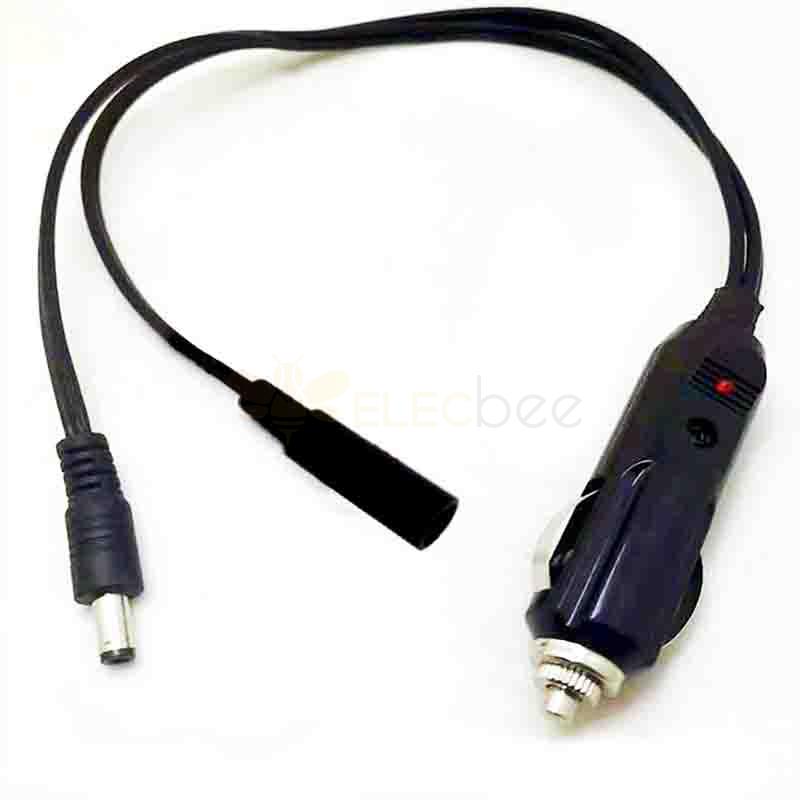 Elecbee DC 55*21 Plug Female And Male To Car Cigarette Car Charger Cigar Lighter Power Cable With Led 1M