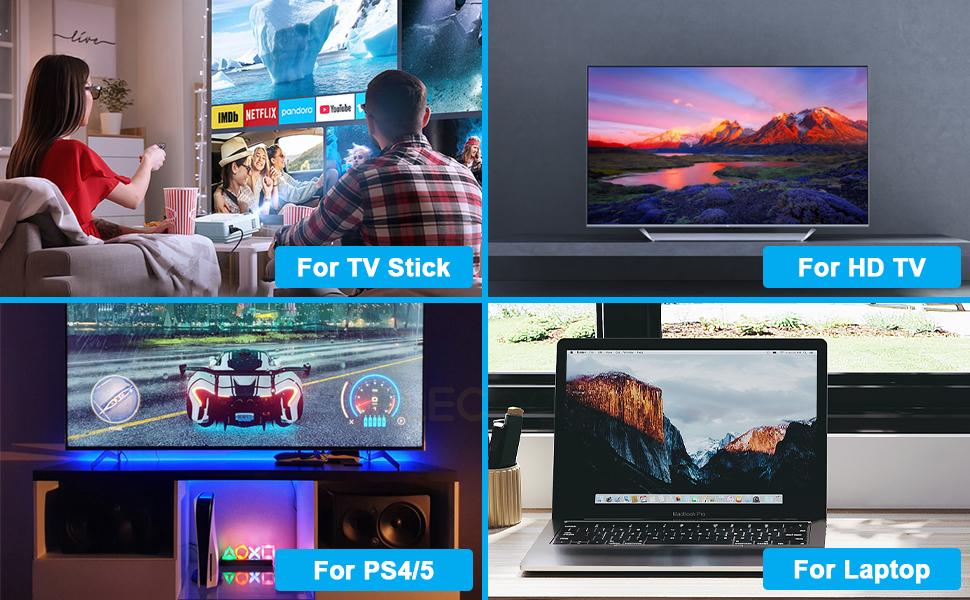 Compatible for devices with standard HDMI ports,like an HDTV, Blu-Ray player, PS3, Xbox 360, Roku tv stick, Boxee box, Mac PC, monitor or projector.