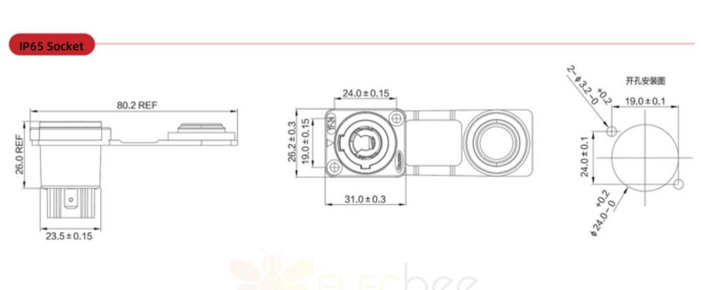 Elecbee Led Display Connector High Current Female Socket Connector Stage Lighting Power Ip65