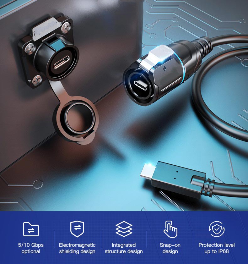 USB 3.1 DATA + 3A POWER: 24 gold-plated pins for 5Gbps & charging in medical/automation gear.