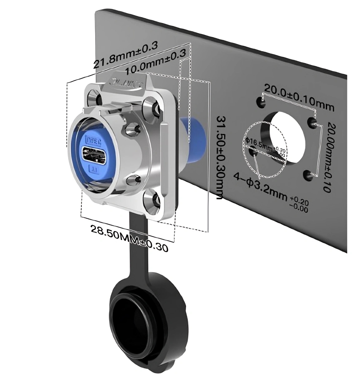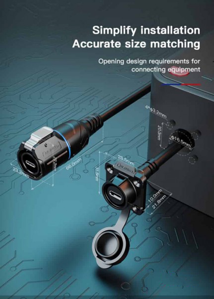 Waterproof and dust-protected industrial USB C panel mount socket IP68 for demanding use.