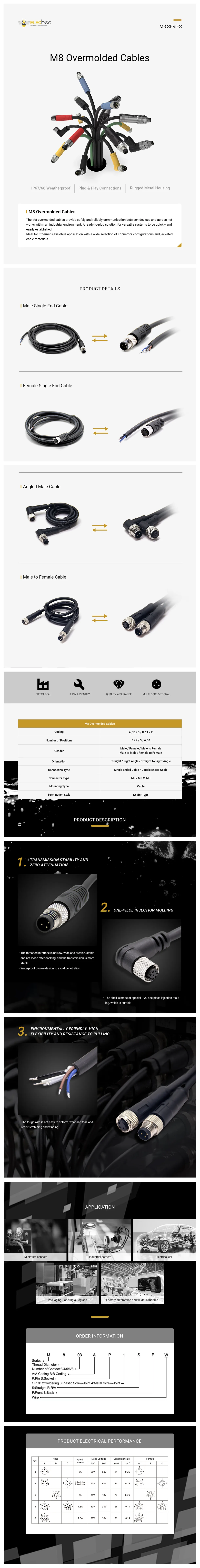 Elecbee M8 Profinet Cable Waterproof 3 Pin Right Angle Female Plug To Male Plug Moding Cable With 1M PVC 24AWG Wire