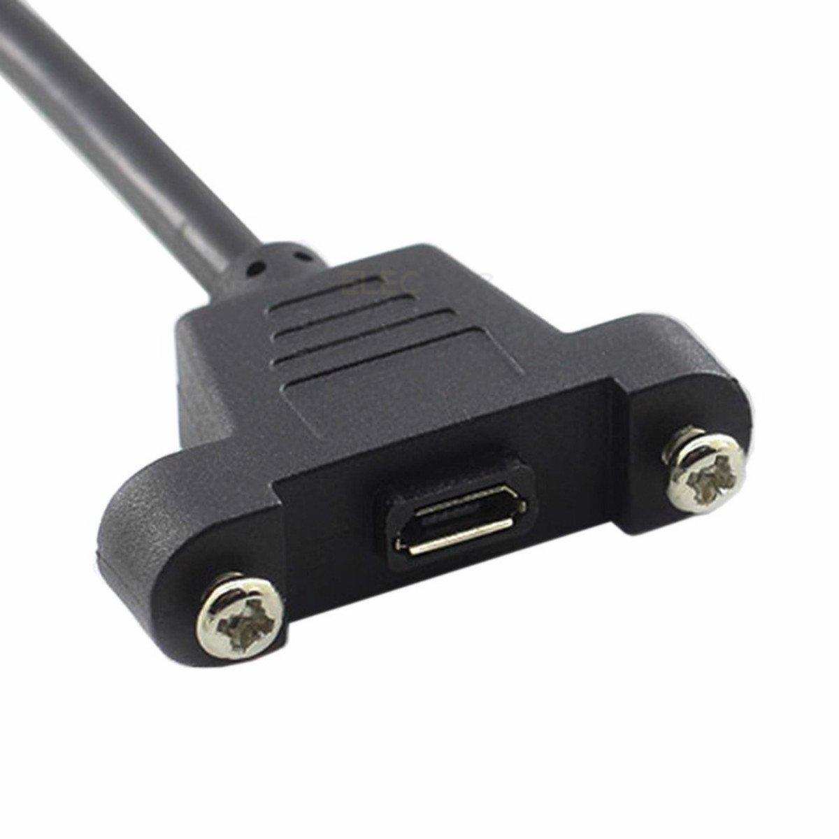 Elecbee Micro USB Male to Micro USB Female Extension Panel Mount Type Cable with Screws, Data+Charge,Black 30CM