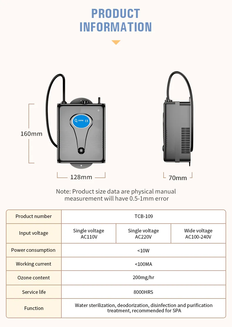 The TCB-109 features a vibration-resistant internal structure and a premium long-life ceramic load to ensure consistent ozone generation even in high-humidity environments. Its corrosion-resistant housing is specifically designed for the demanding conditions of hot tub pump rooms and water treatment enclosures. With its simplified installation and high-concentration output, this device is the professional choice for technicians and homeowners seeking a heavy-duty water sterilization solution for medium-to-large sanitation projects.