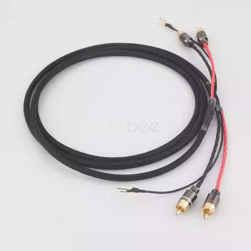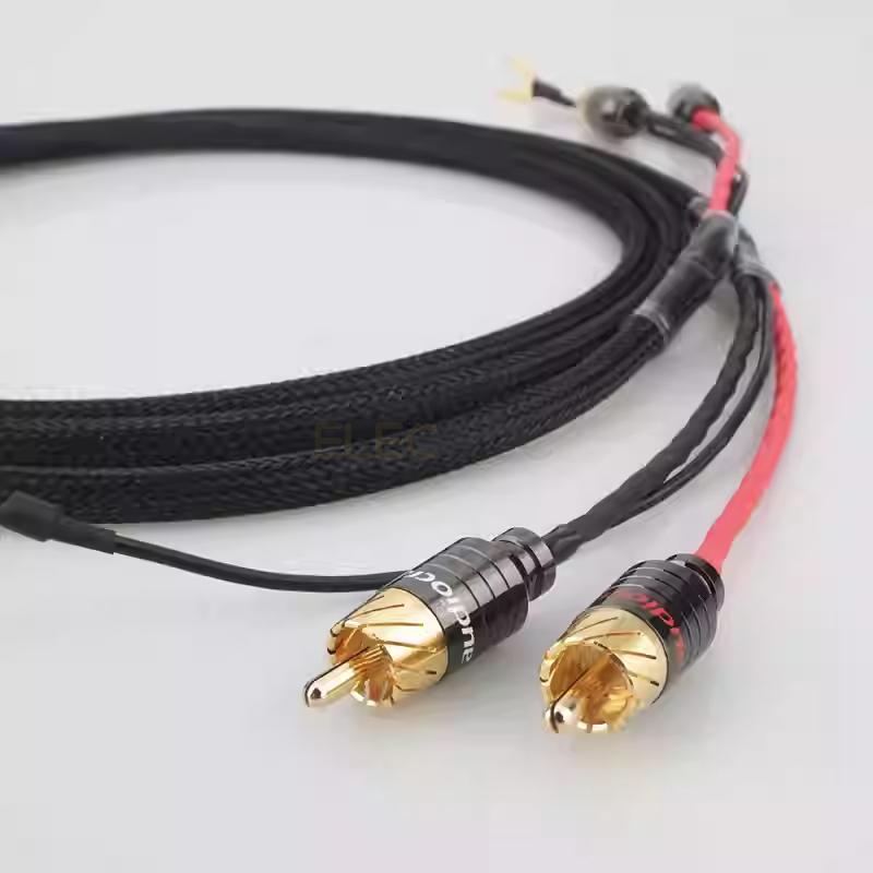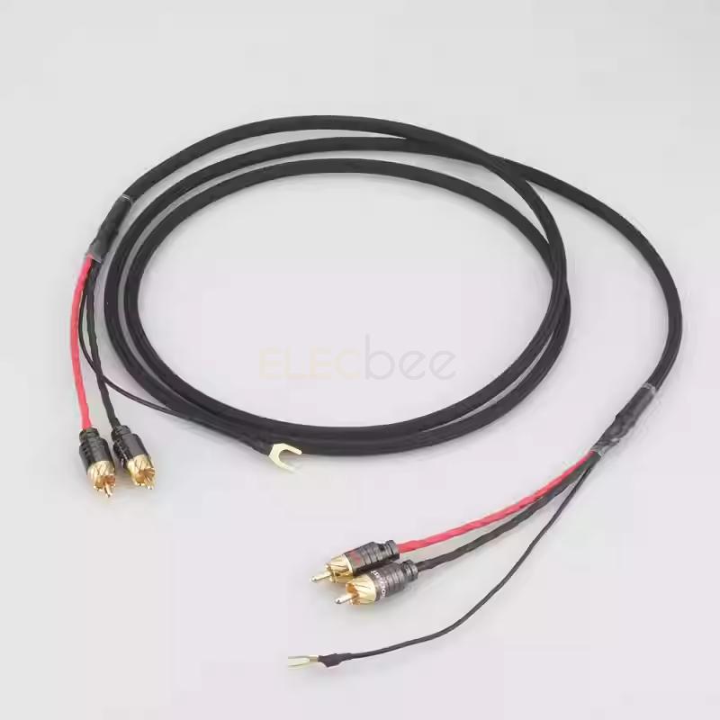 Elecbee Vinyl Turntable Tonearm Cable - 5N OFC Oxygen-Free Copper Conductor, Gold-Plated RCA Phono Jacks with Ground Wire, 0.5m Length