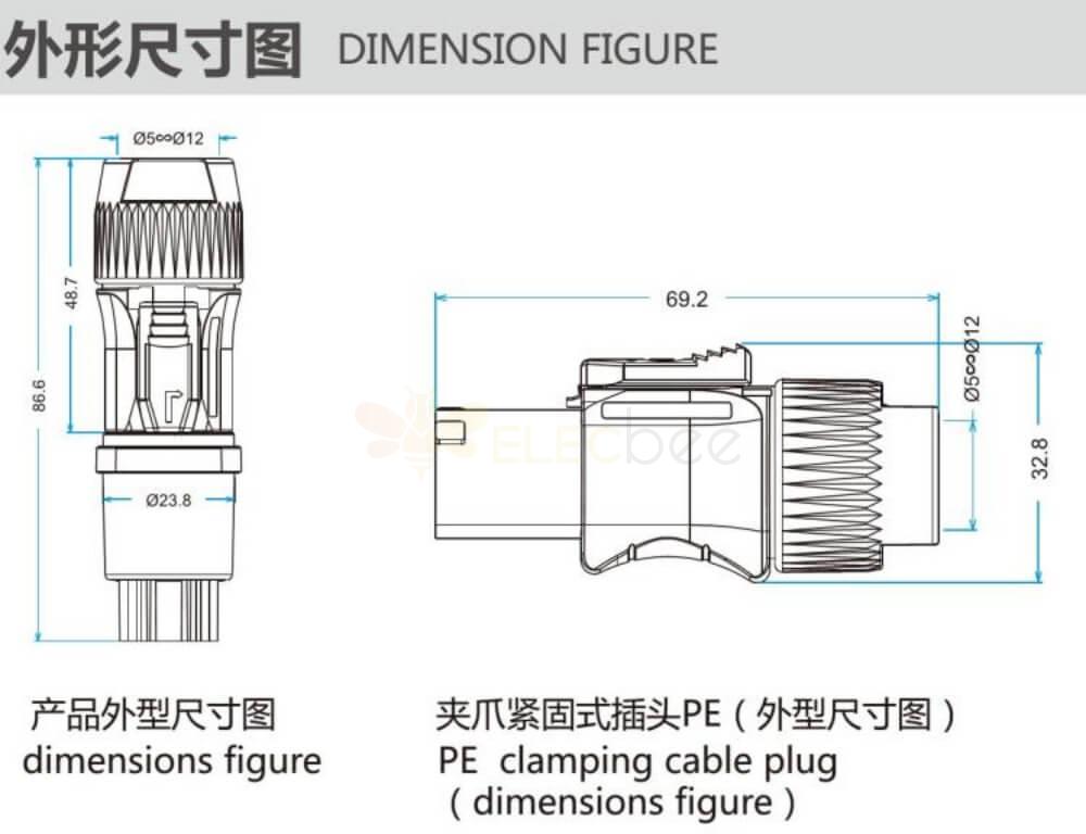 YF24 waterproof aviation plug, locking 3-core equipment connectors, suitable for quick installation and connection of LED, display, power supply, audio, Canon, Newquerk, plug lights and other equipment; —YF-24 power connector, use 20A/250VAC high current capacity, the quality meets international standards, and supports left and right docking and extended wiring; -YF24 Canon plug, uses different colors for identification of input (blue) and output (gray), making wiring easier Easy and convenient to avoid mutual matching errors;