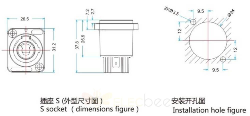 Elecbee Portable Powercon Supply Panel Box Electrical Connector Plug And Socket Adapter