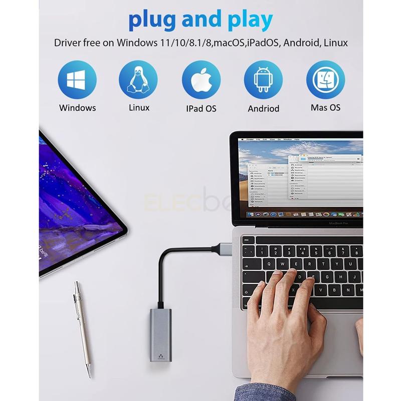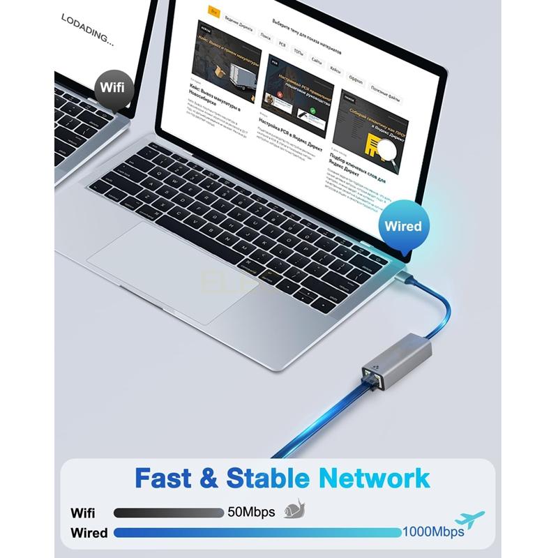 Elecbee USB A to RJ45 Gigabit Ethernet Adapter - 1000Mbps, Plug-and-Play, Compatible with Nintendo Switch 1/2, Laptop, MacBook, Chromebook More