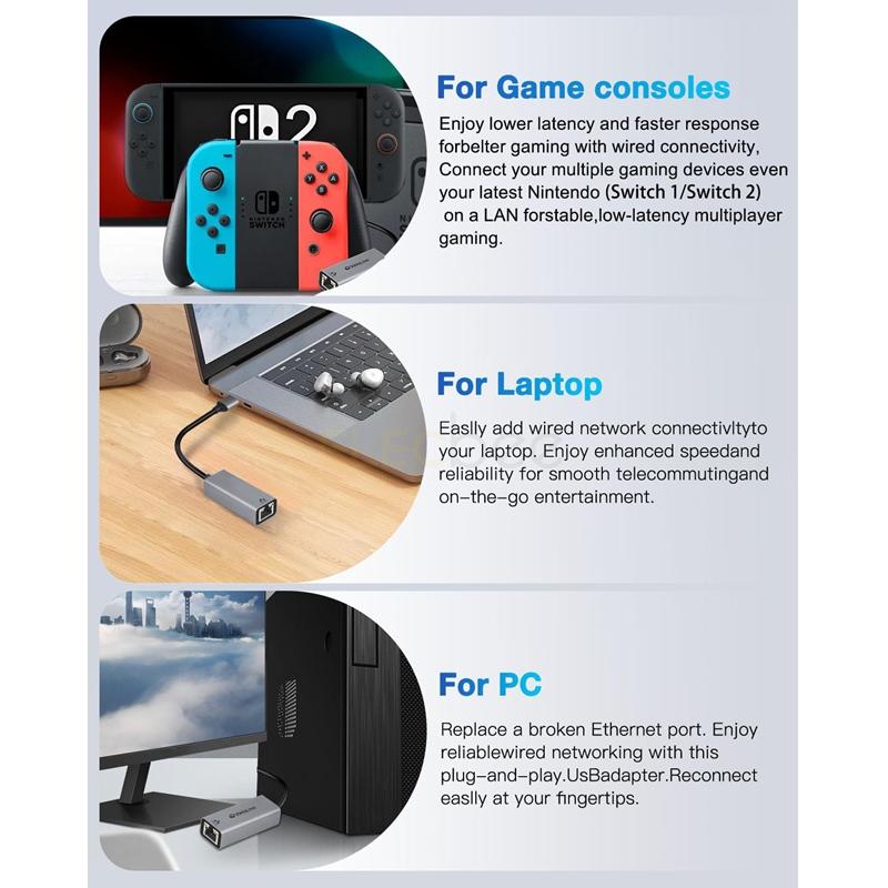 • Optimal Performance Tips: Achieve full 1000Mbps speed by using CAT6 or higher Ethernet cables, a USB 3.0 port, and ensuring the adapter is fully plugged into your device. Perfect for competitive gamers needing stable, low-latency multiplayer connections.