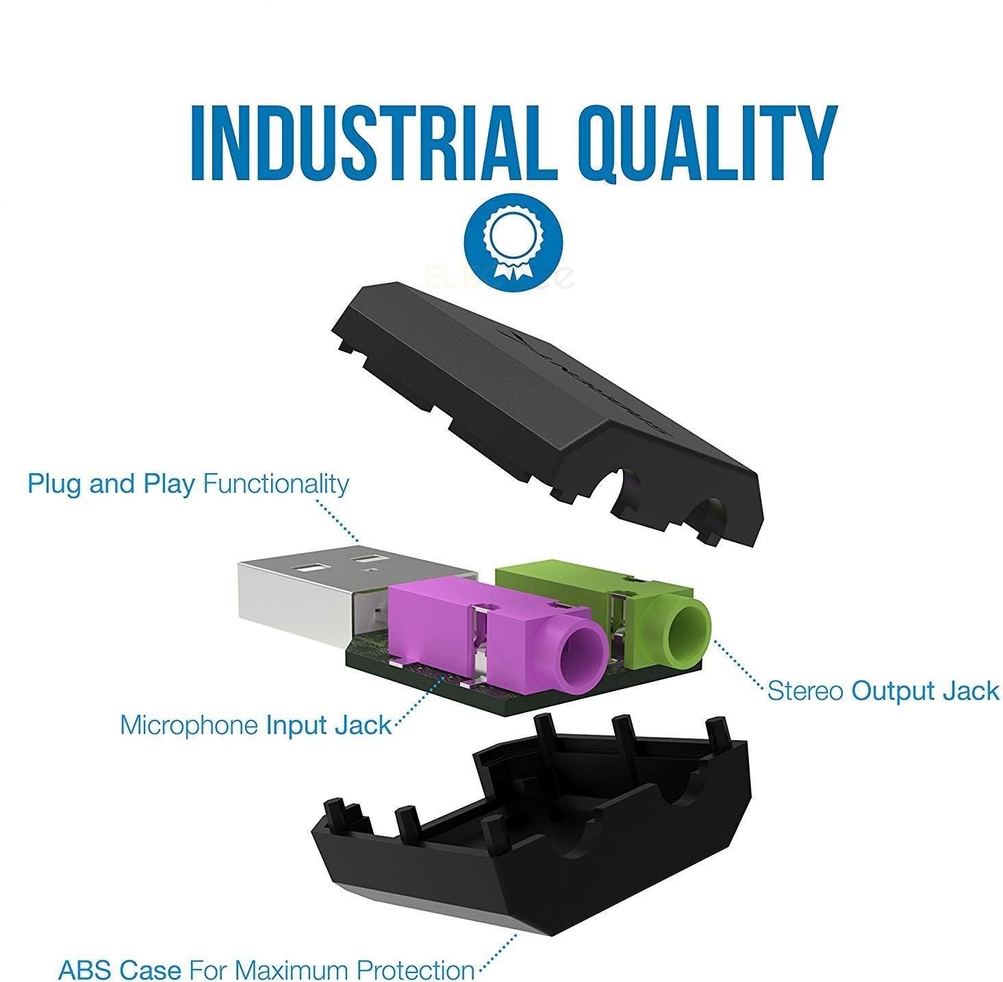 Elecbee USB External Stereo Sound Adapter for Windows and Mac. Plug and Play No Drivers Needed