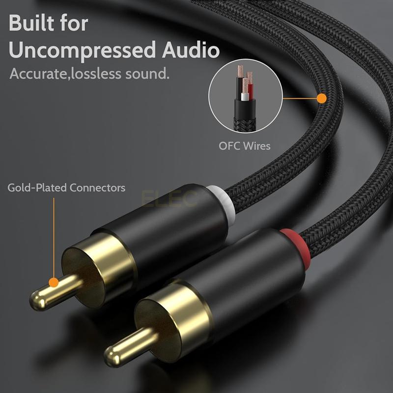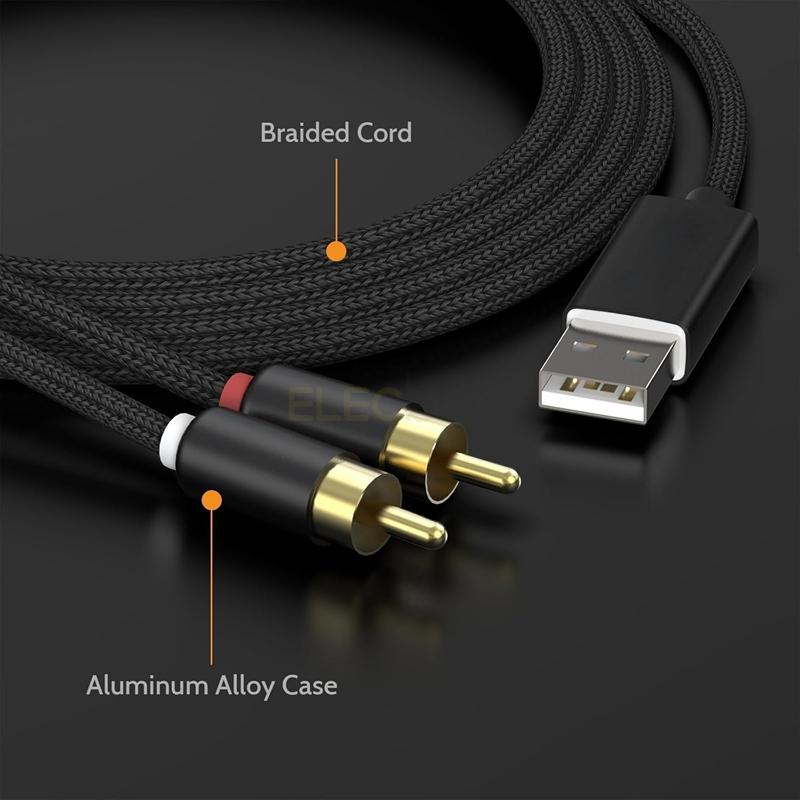 Elecbee USB A Male to 2 Male RCA Stereo AUX Cord for Laptop, PC, Computer