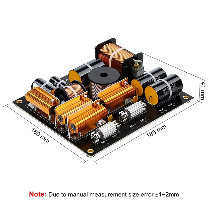Questo crossover per altoparlanti audio a 3 vie da 1000W è progettato per sistemi audio Hi-Fi professionali, supportando gli alti, la fascia media e la divisione di frequenza dei bassi. Garantisce eccellenti prestazioni audio per altoparlanti KTV da 15-18 pollici con una robusta build con materiali di plastica e metallo.