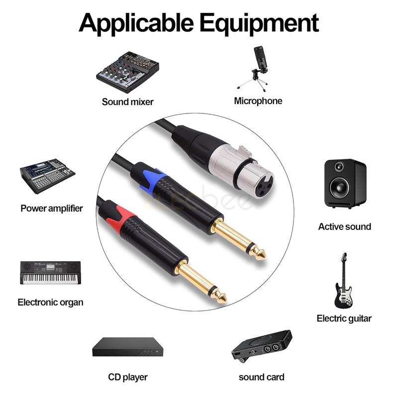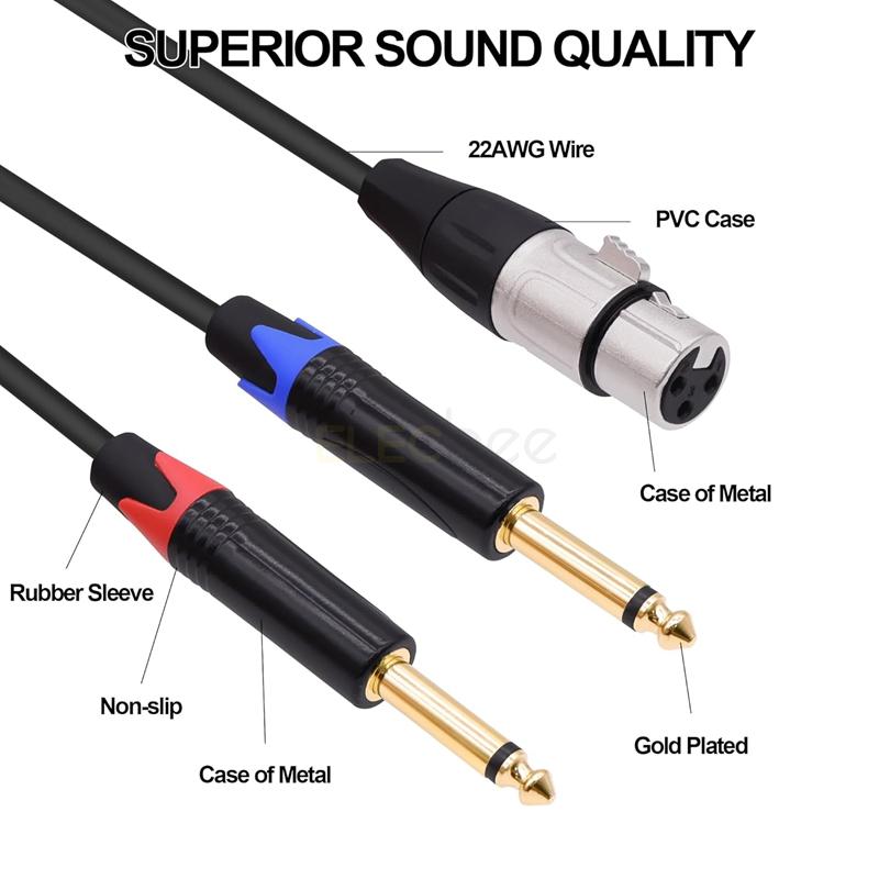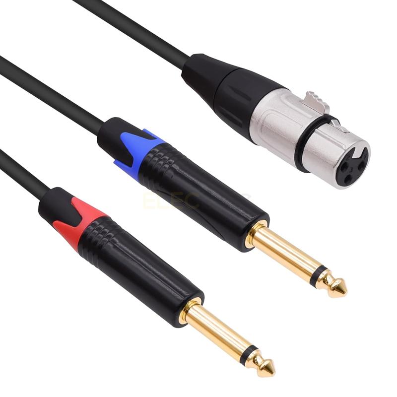 ELECBee XLR a doppio 6,35 mm 1/4 TS Splitter Audio Y Adattatore Cavo Adattatore da 1/4 pollici Mono a Female 3Pin XLR Cord Convertitore audio per microfoni per amplificatore di chitarra elettrica Amplificatore-1M