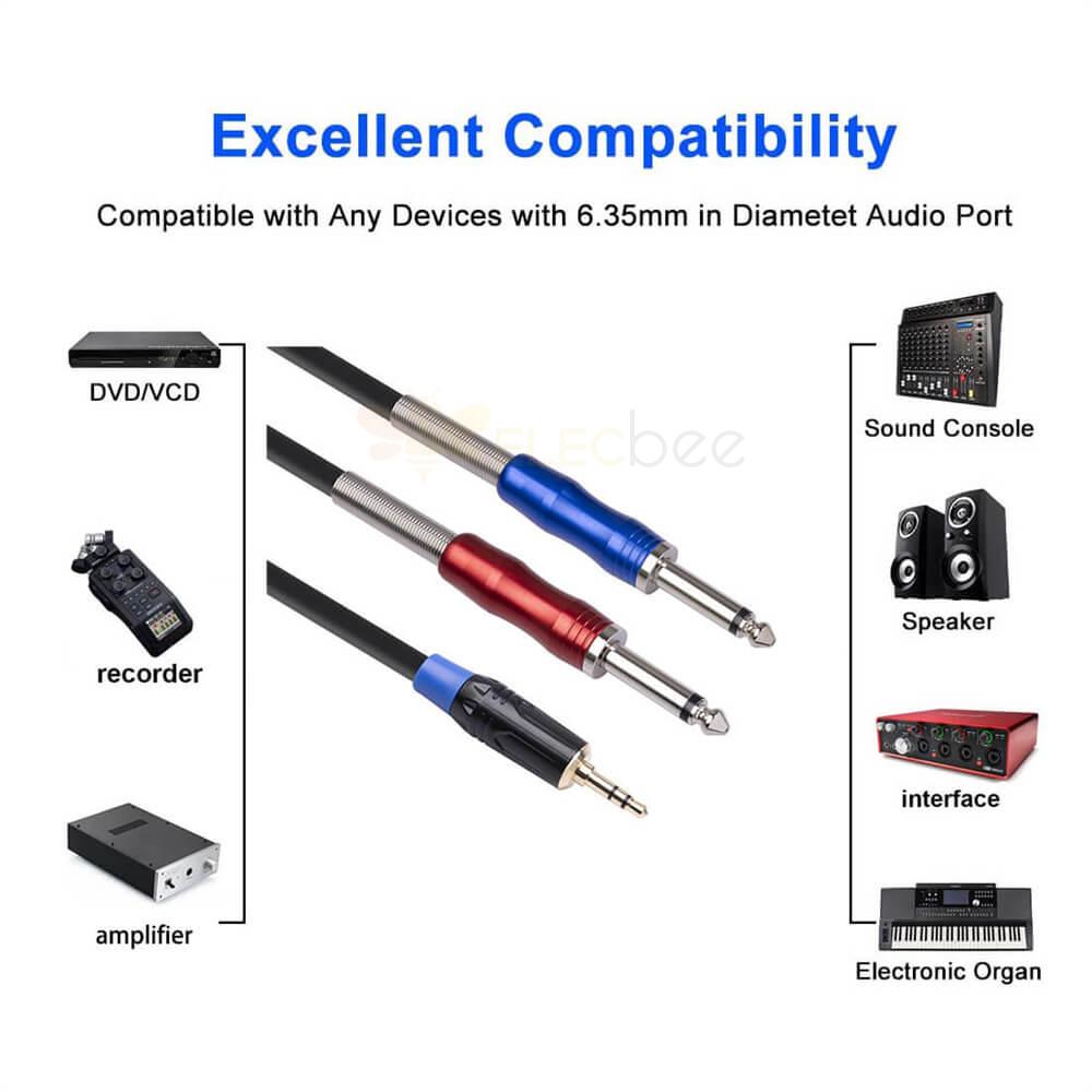 Elecbee Mixer placcato in oro con cavo a doppia schermatura da 3,5 mm maschio a doppio cavo audio bidirezionale da 6,35 mm maschio da 1,8 metri