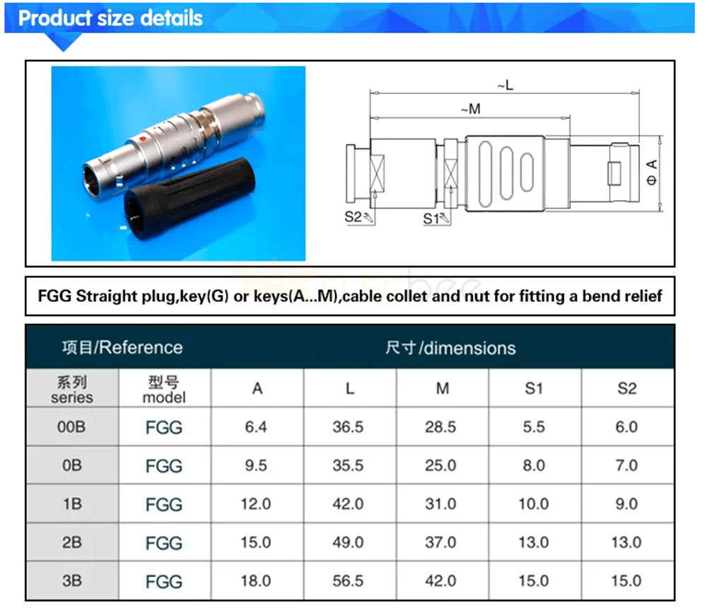 • Spina FGG, presa EGG, serie OB, maschio e femmina, dritta, 2 pin