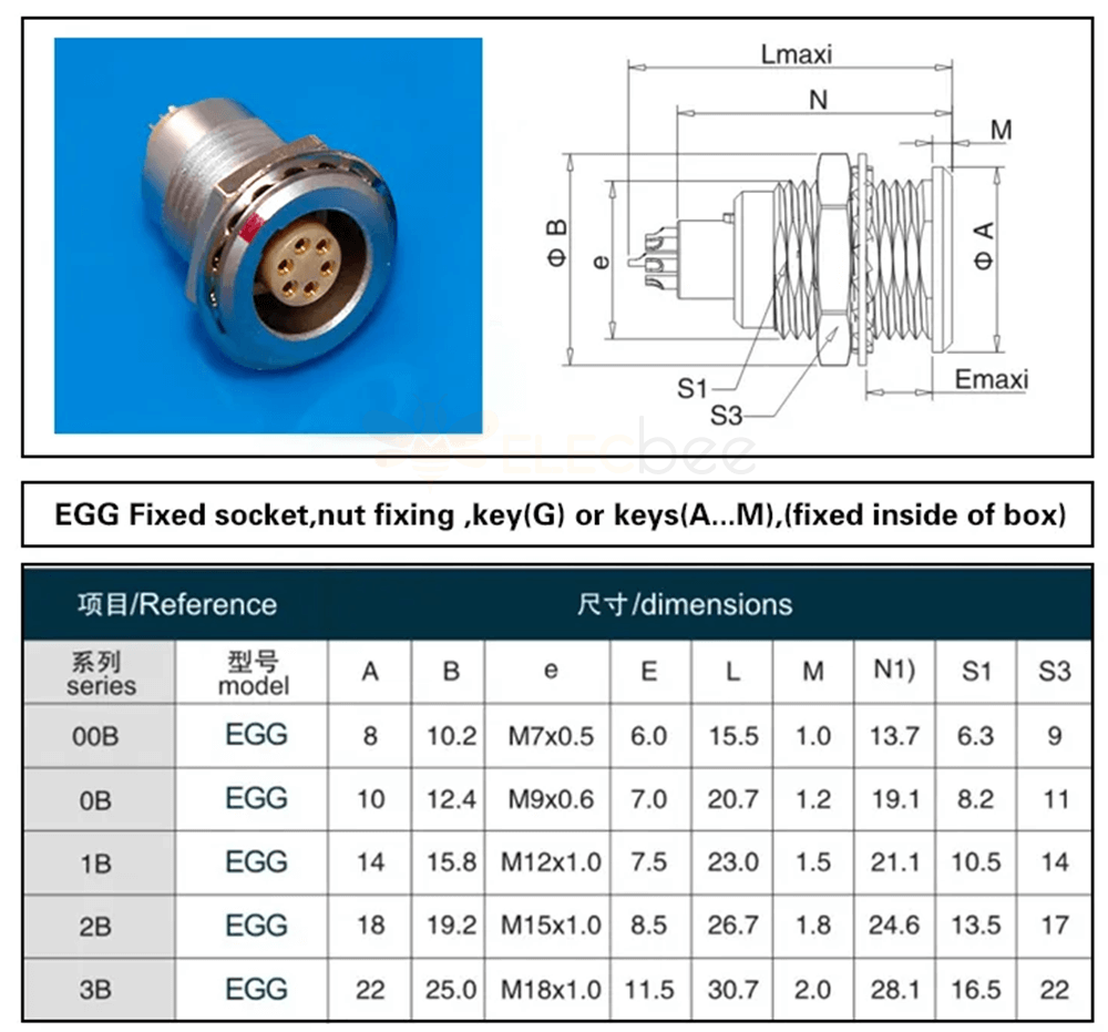 Elecbee Spina aeronautica in metallo Connettore circolare a 2 pin Push-Pull Spina rapida autobloccante Spina FGG / Presa EGG Serie 0B