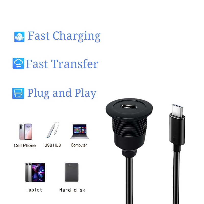 Design elegante a filo per cruscotti di veicoli/marini - Progettato per essere installato a filo con i pannelli, questo adattatore USB-C maschio-femmina consente di risparmiare spazio e riduce l'ingombro dei cavi, perfetto per installazioni pulite e integrate in cruscotti di auto, camper, barche o motociclette.