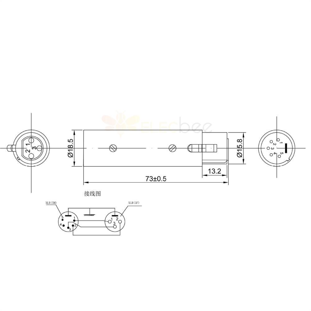 Elecbee In lega di zinco Shell Large 3Pin Femmina Xlr a 5Pin Xlr Maschio Dmx Lampada di segnalazione Adattatore Xlr