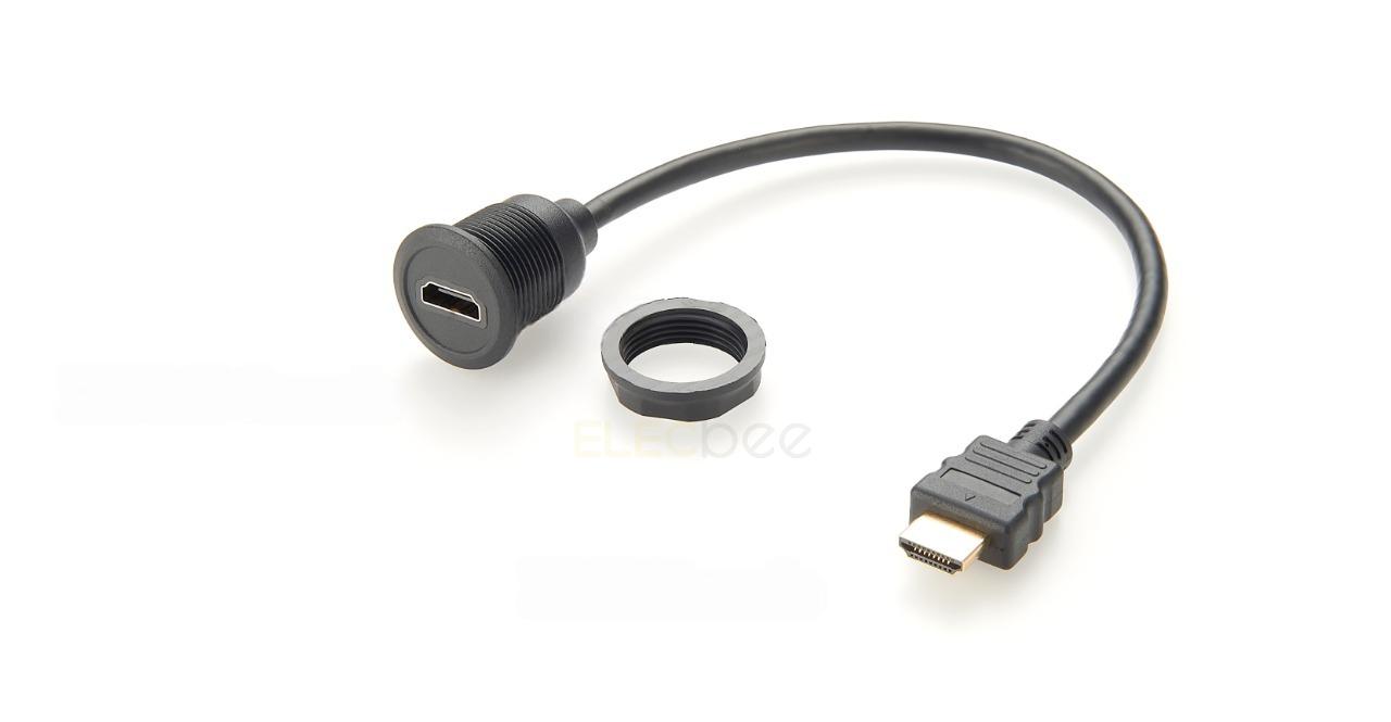 Elecbee HDMI 2.0ラウンドパネルマウントケーブル、HDMIフラッシュマウントメスからオスアダプター、HD 4K 2K 60Hzビデオパネルダッシュボード用マウントケーブル
