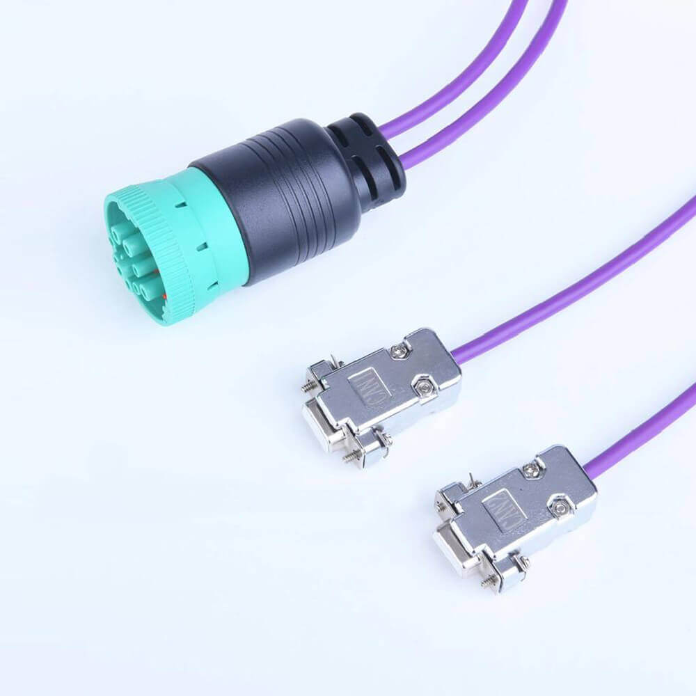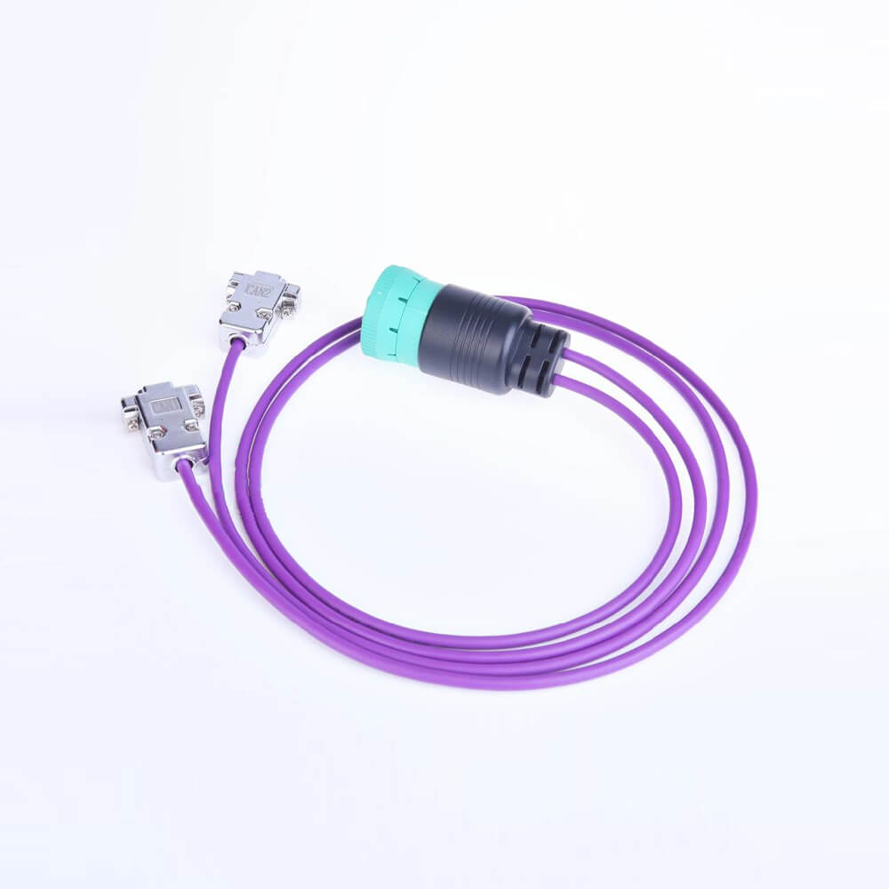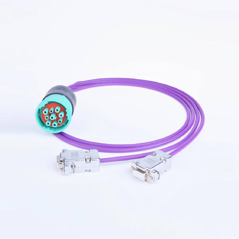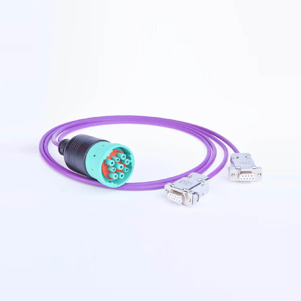 このアダプタ ケーブルは、単一のドイツ 9 ピン コネクタを介して複数の J1939 ネットワークにアクセスできる大型車両、トラック、バス、トラクターなどで役立ちます。