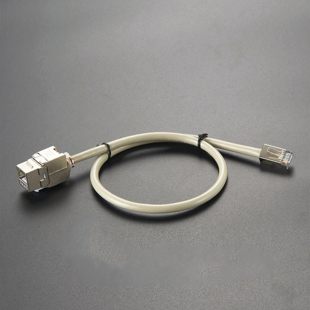 Elecbee シールド付き CAT6A ジャック パネル マウント - オス イーサネット 180 度成形延長ケーブル 30cm