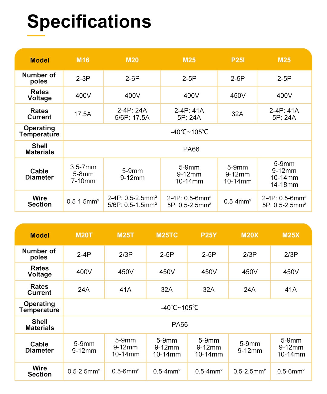 φ3.5~7mmの調整可能なシール – センサー内蔵ランプなどの小型デバイスに適した細径ケーブル(0.5~1.5mm²)に対応します。