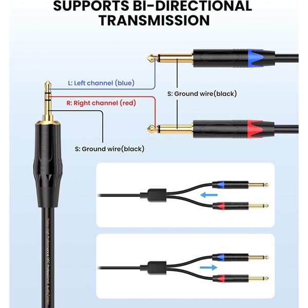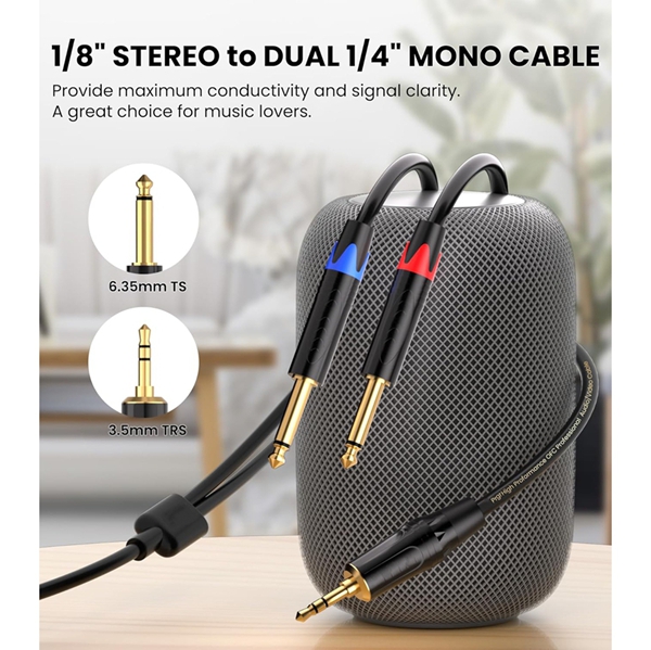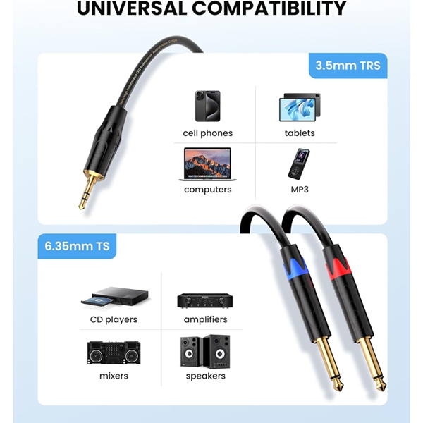 내구성이 뛰어난 금도금 커넥터: 24K 금도금 3.5mm TRS 및 1/4인치 TS 커넥터는 신호 손실을 줄이고, 잡음을 제거하며, 내구성을 향상시킵니다. 구리 쉘은 간섭을 더욱 차단하여 음질을 유지합니다.