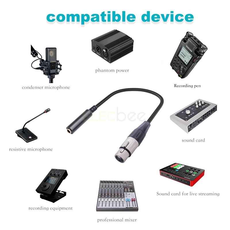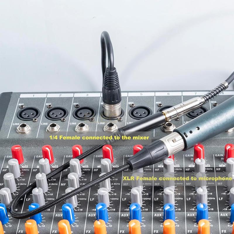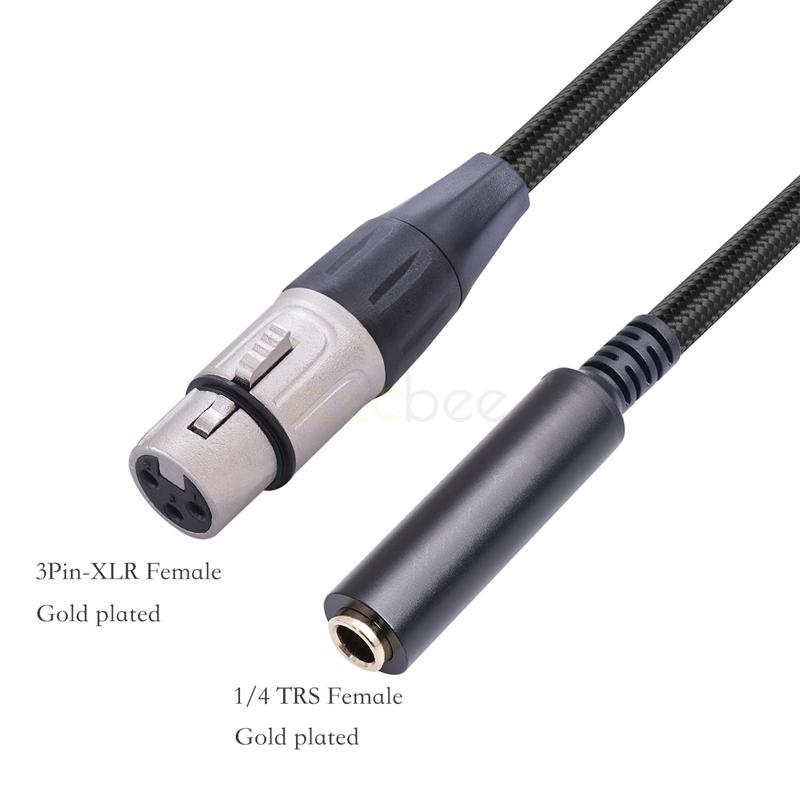 ELECBEE XLR 암컷에서 14 개의 여성 오디오 케이블 - 3 핀 XLR ~ 6.35mm 소켓 어댑터, 금속 구조, 0.3m, 스테레오 모노를 지원합니다.