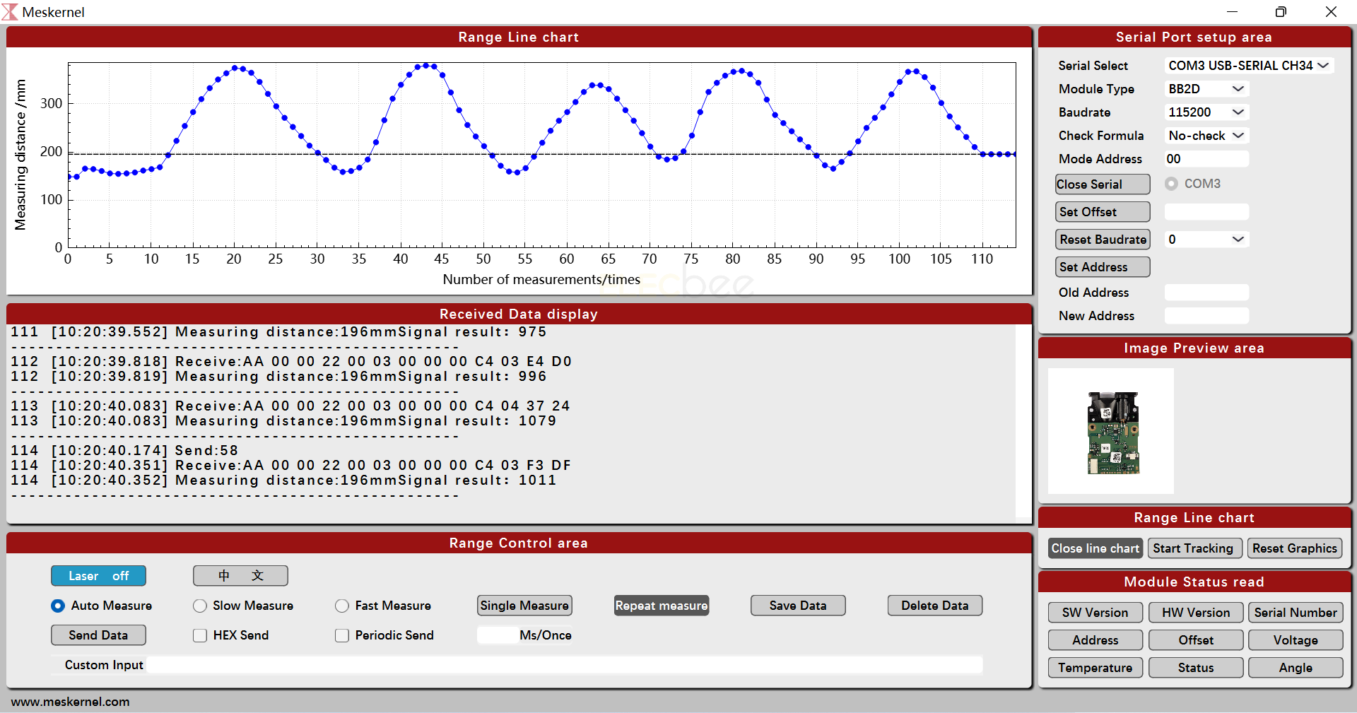 Датчик лазерного расстояния Elecbee представляет собой сложную сенсорную растворную технологию, использующую лазерную технологию для точного измерения расстояния. Разработанный для облегчения вторичной разработки и бесшовной передачи данных, он предлагает универсальную совместимость с различными интерфейсами связи, включая USB, TTL, RS232, RS485 и Bluetooth. Его настраиваемые функции включают двойные лазерные опции-зеленые и красные и выбираемые частоты 3 Гц, 10 Гц и 20 Гц, обеспечивая адаптивность в различных операционных средах.