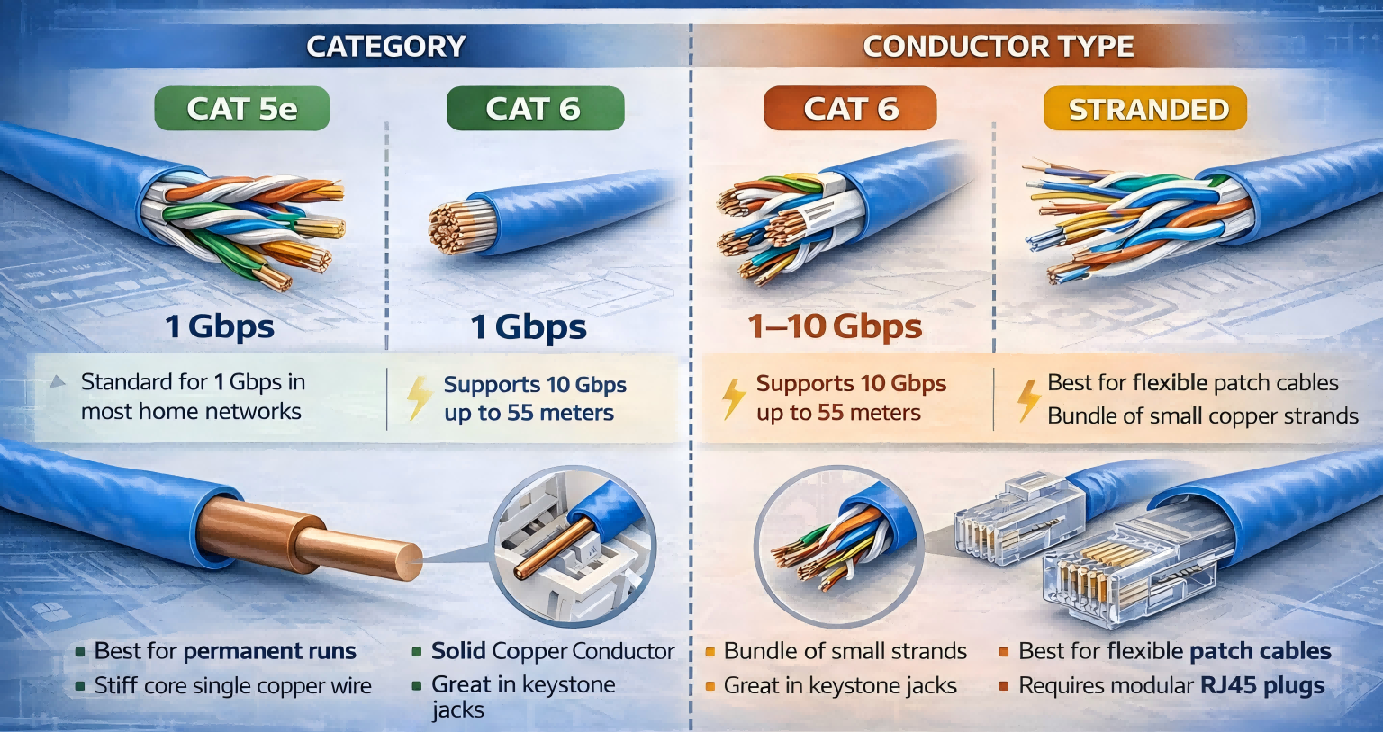 1. Kategori (Cat5e vs Cat6 vs Cat6a)