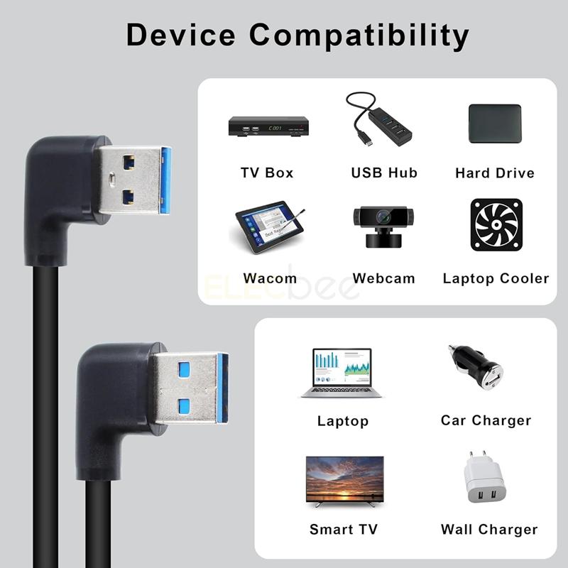 Elecbee 90 Derece Kısa USB 3.0 Uzatma Kablosu 1Ft/30CM - Sağ Açı Tip A Erkek - Erkek Sabit Sürücü, Dizüstü Bilgisayar, Monitör ve Daha Fazlası için Şarj ve Veri Aktarım Kablosu