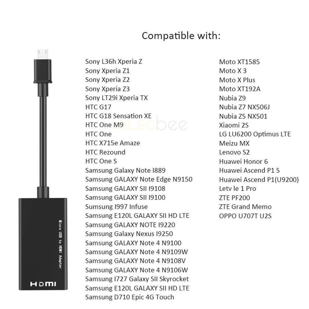 【请注意】这款 MHL 5 针转 HDMI 适配器兼容具备 MHL 功能的智能手机。不适用于三星 S6/S7 以及其他不支持 MHL 功能的设备。