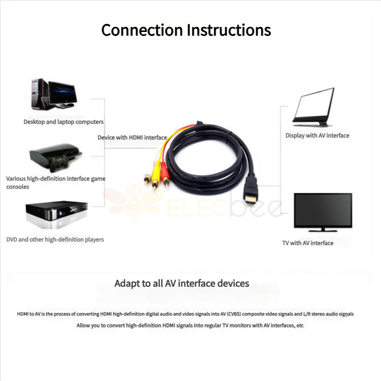 HDMI转AV线主要是用于高清播放器(自带解码器的)HDMI接口设备与AV接 口的电视相连接.