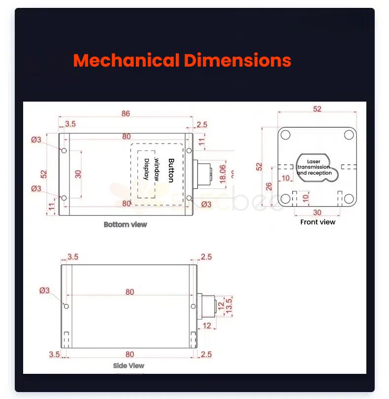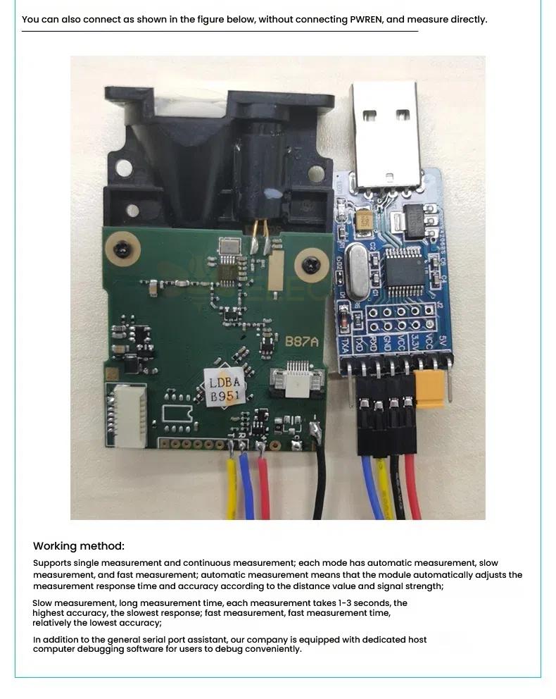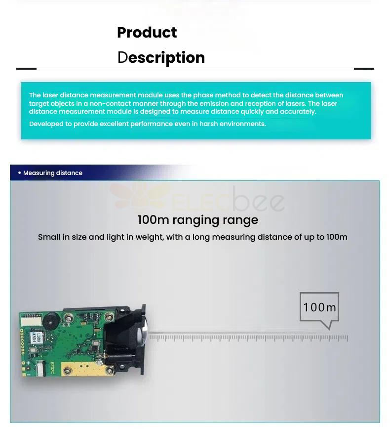 Elecbee 100M/328FT 激光测距传感器仪表测距仪模块单串行 TTL 信号到 PC