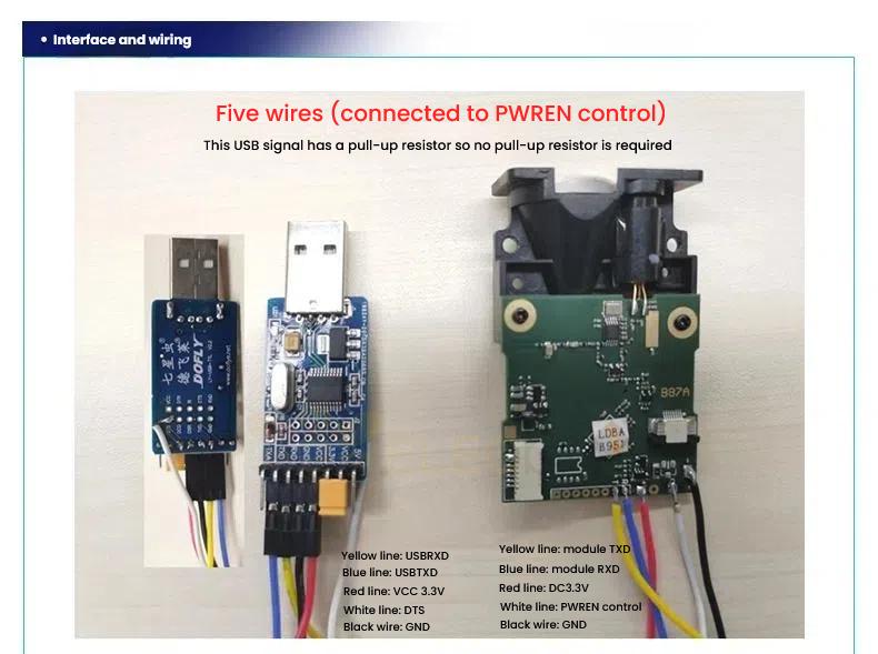 功能:发送大写字母“O”打开激光器,发送大写字母“C”关闭激光器,发送大写字母“D”测量距离,发送大写字母“S”查看模块温度和电源。