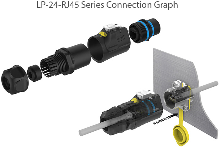 RJ45系列连接器具有1/4卡口连接和快速插拔等多种连接方式,适用于恶劣环境。 电缆护套采用实心压铸外壳和独特的电缆双夹线鞍座和护套,适用于普通RJ45插头电镀外壳防风雨。 这些连接器具有屏蔽系统,具有高频噪声抗扰度和电磁干扰保护,防护等级 IP65 防水防尘。 符合 EIA568B 和 ISO/IEC11801 的 D 级或 CAT 3e 标准,RJ45 连接器兼容 CAT5e,数据传输速率达到 10GBit/s。