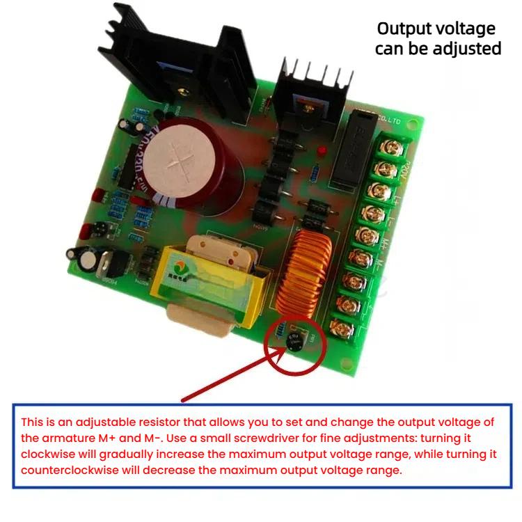 - 本控制器输入AC220V,电枢口DC 0v-220v 配合电位器,无级可调自由。