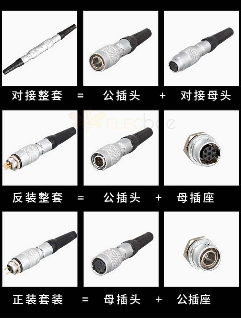 Elecbee 推拉式快速连接航空连接器YC8连接器反装7芯带针插头带孔底座防水
