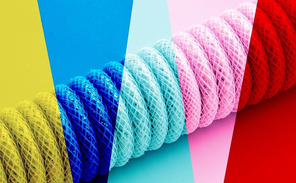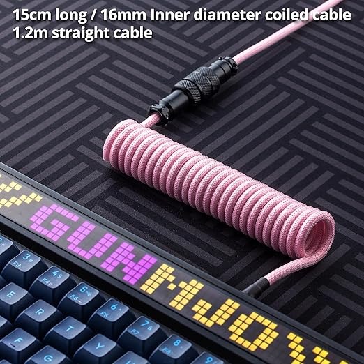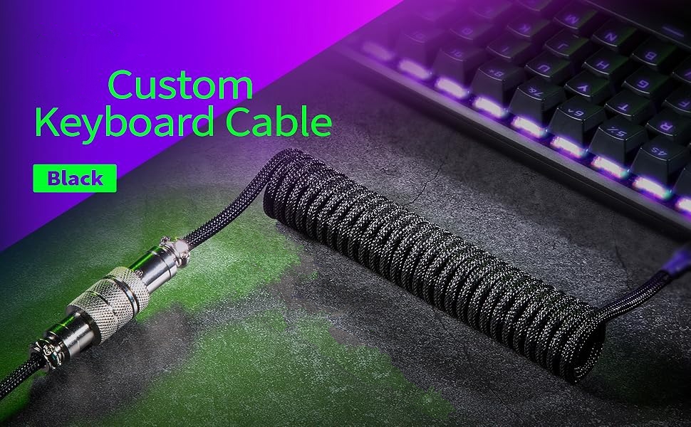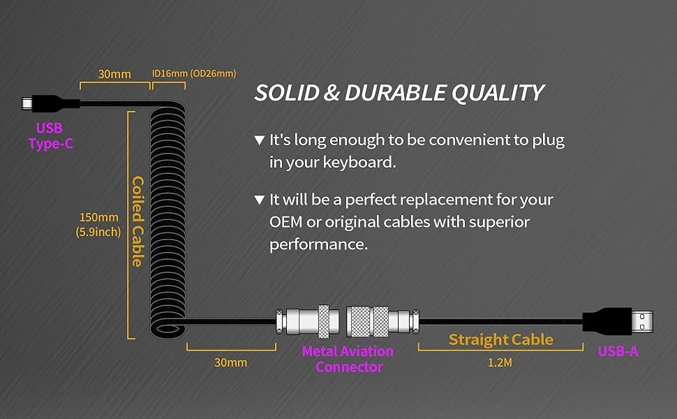 -【Solid & Durable Quality】Double-sleeved coiled keyboard cable with high-quality copper wire AND aluminum shielding FOR enhanced durability AND signal stability.